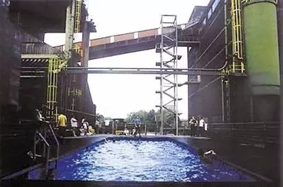 焦煤池的兩堵巨大的水泥堅(jiān)壁,如今則化作一個(gè)攀巖訓(xùn)練場(chǎng),巖壁上設(shè)計(jì)出適合不同水平攀巖者的多條路徑,吸引了大量來(lái)自各國(guó)的攀巖愛好者。多個(gè)鋼鐵廠的洗礦池,稍作裝修便成了游泳池。